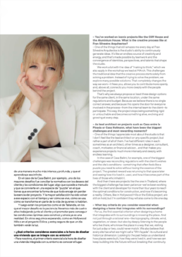 La publicación ahonda en sus primeras experiencias en el mundo laboral, el valor del aprendizaje en distintos contextos culturales y su vínculo duradero con Oporto. Además, se aborda su rol como docente en MArch Valencia, donde transmite a sus alumnos la importancia de pensar desde el hacer, de cuidar el proceso tanto como el resultado, y de entender que cada proyecto es una oportunidad para sumar valor desde lo esencial.