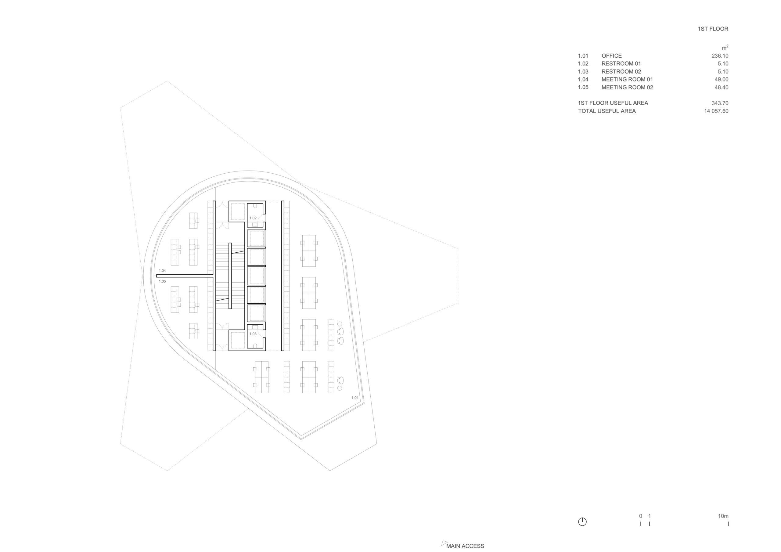 El proyecto propone una arquitectura definida por la precisión geométrica y el control de la luz, donde la forma no solo responde a criterios formales, sino que configura la experiencia espacial y la relación del edificio con su contexto.