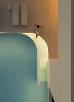 En una dirección, este patio recoge las estancias más públicas y abiertas de la casa, creando una secuencia de espacios exteriores e interiores que comienza y termina en el jardín perimetral. Esta secuencia de espacios se materializa mediante cuatro límites de vidrio que pueden retirarse por completo en los muros laterales. Esta operación posibilita percibir un espacio híbrido que va de un lado al otro de la parcela, siendo, en definitiva, el mayor espacio libre que se puede lograr en esta propiedad, no solo visualmente sino también físicamente.