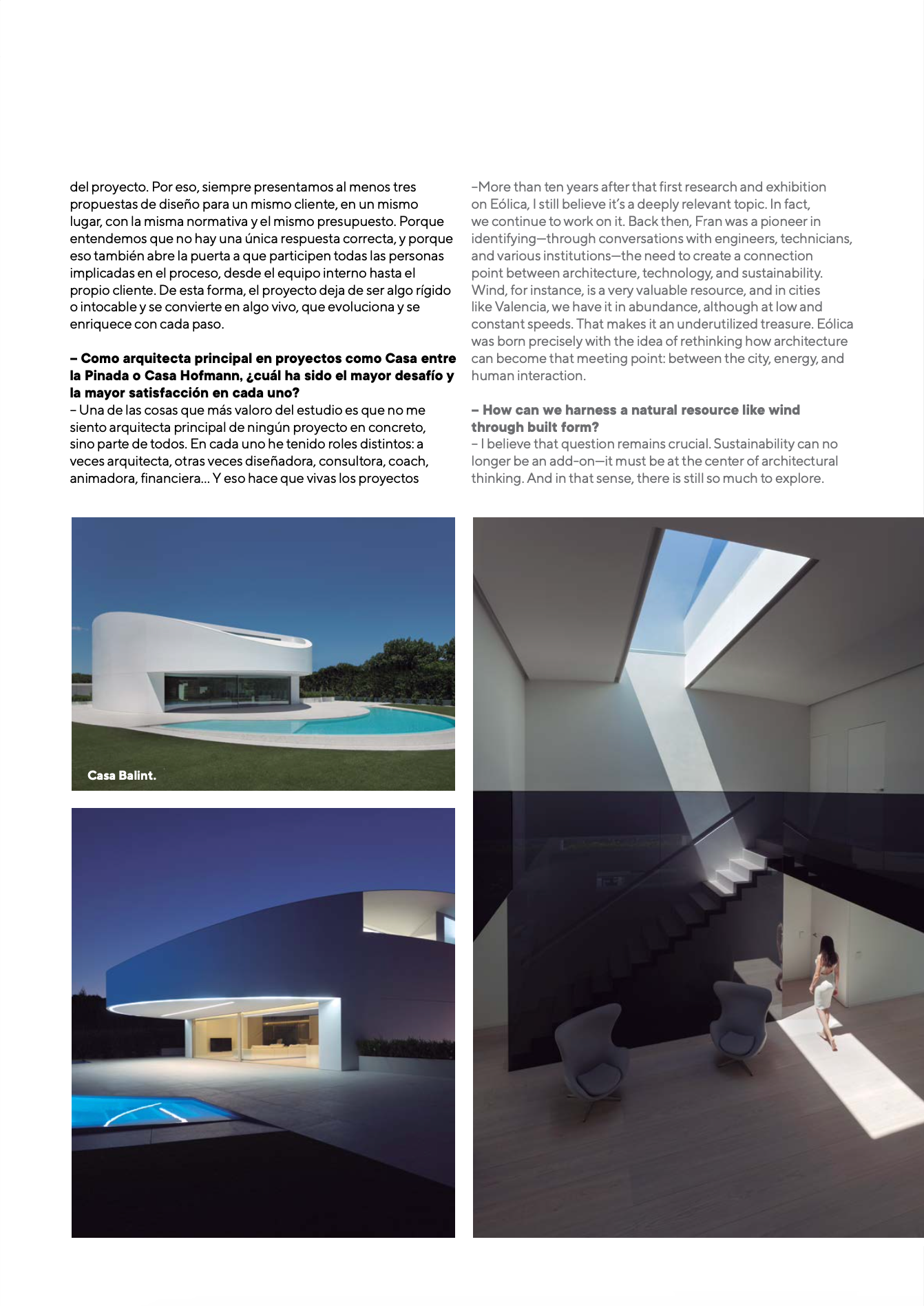 The publication delves into her early experiences in the professional world, the value of learning in different cultural contexts, and her lasting connection with Porto. It also highlights her role as a lecturer at MArch Valencia, where she conveys to her students the importance of thinking through making, of caring for the process as much as the result, and of understanding that each project is an opportunity to add value from the essential.