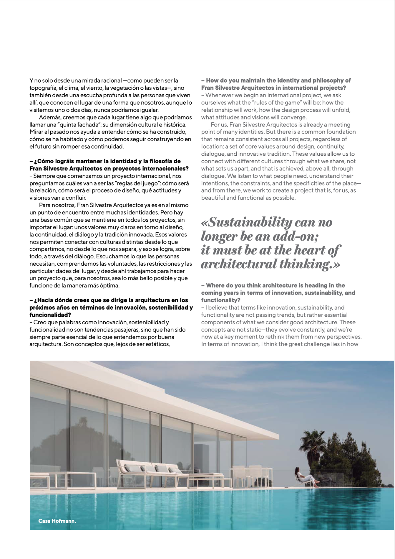 In its spring–summer edition, Decomarbella magazine features an interview with Maria Masià, general director of Fran Silvestre Arquitectos, where she reflects on her professional career, her vision of architecture, and the role that teaching plays in her work.
