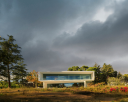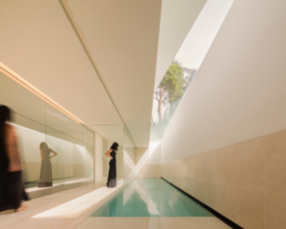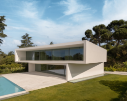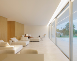 Villa Lavan is a residence composed of two single-story, elongated volumes, conceived to bring a human scale to the whole. These volumes are slightly rotated in relation to one another, a strategy that responds to three main reasons.